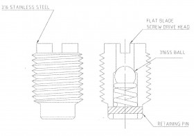 The Marine Grade 316 stainless steel PLI Internal Check Fitting (PLI-IC) is installed before the lube fitting.